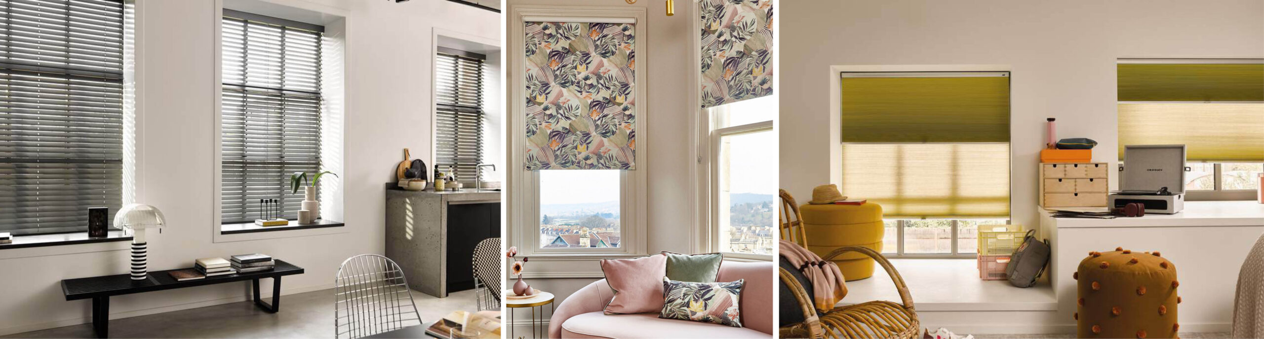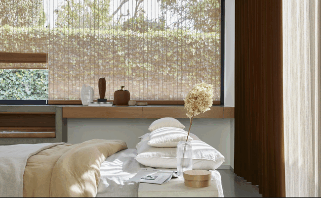 Steng sola ute eller demp lyset med solskjerming fra rullegardiner, plisségardiner, persienner og gardiner, samtidig som du reduserer akustikken, isolerer og skjermer.