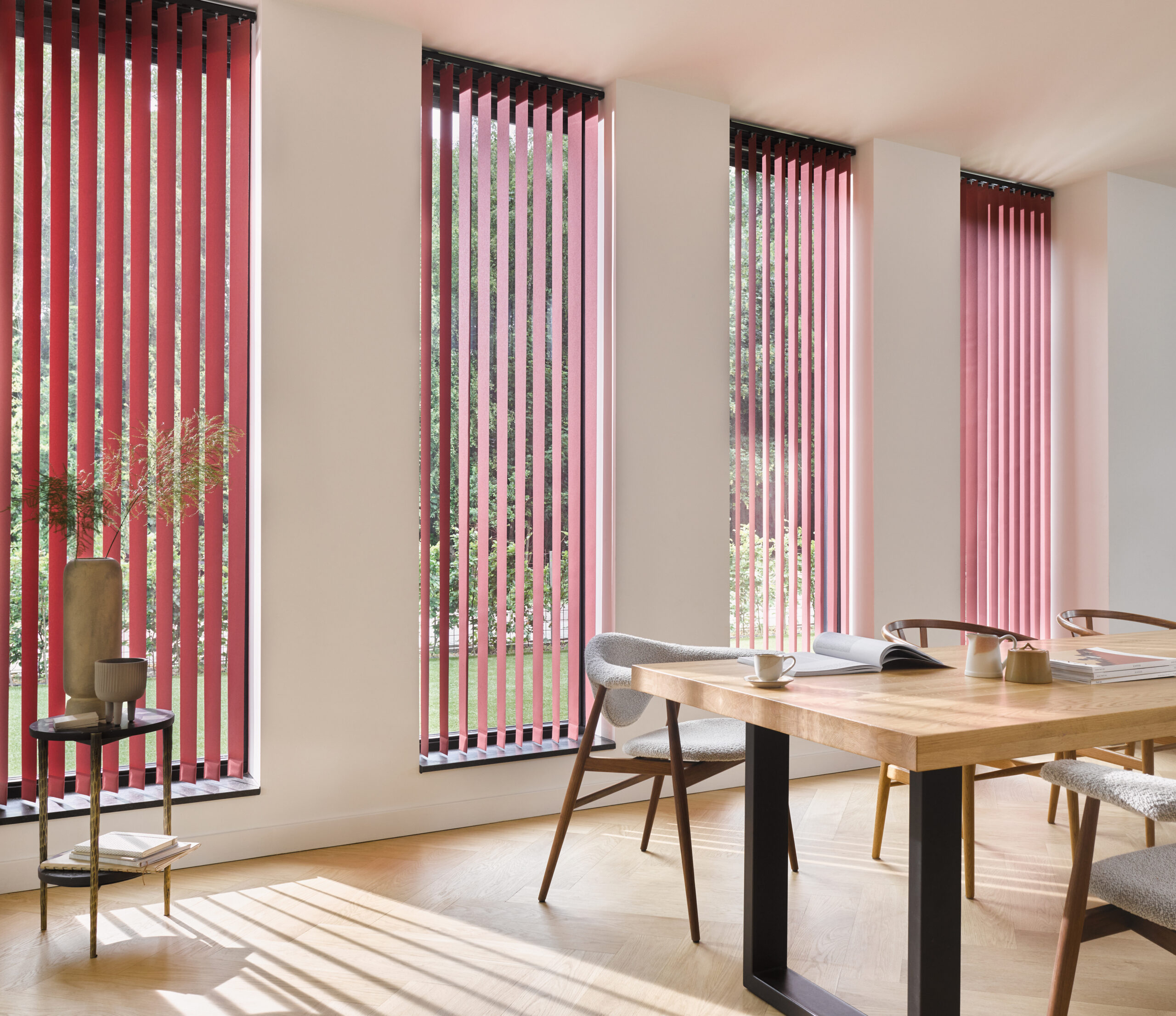 Lamellgardiner tilbyr en kombinasjon av enkel eleganse og funksjon, optimalt for store vinduer, skyvedører og vinterhager. Nyt naturlig lys, reduser fjenskinn og bevar privatlivets fred.