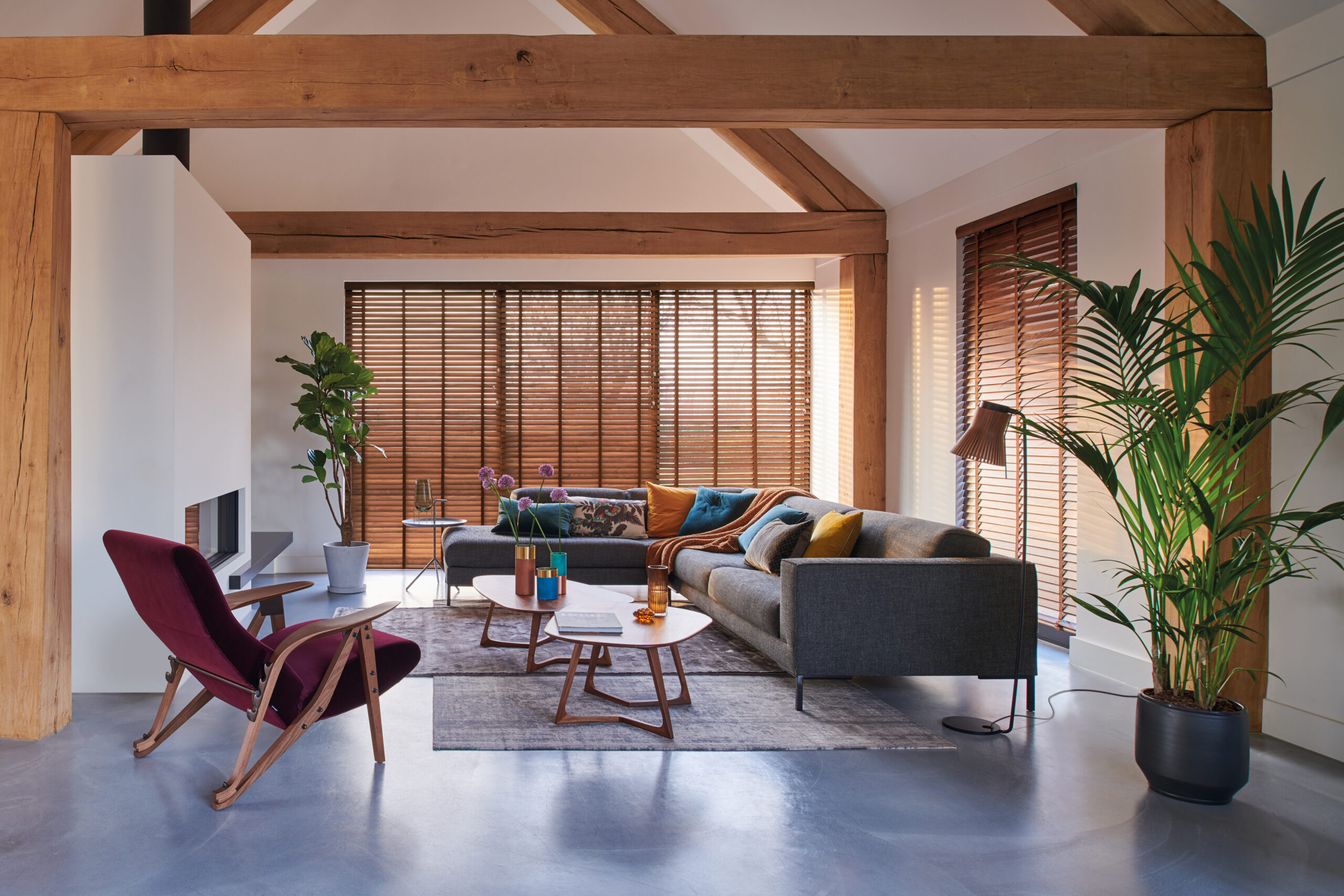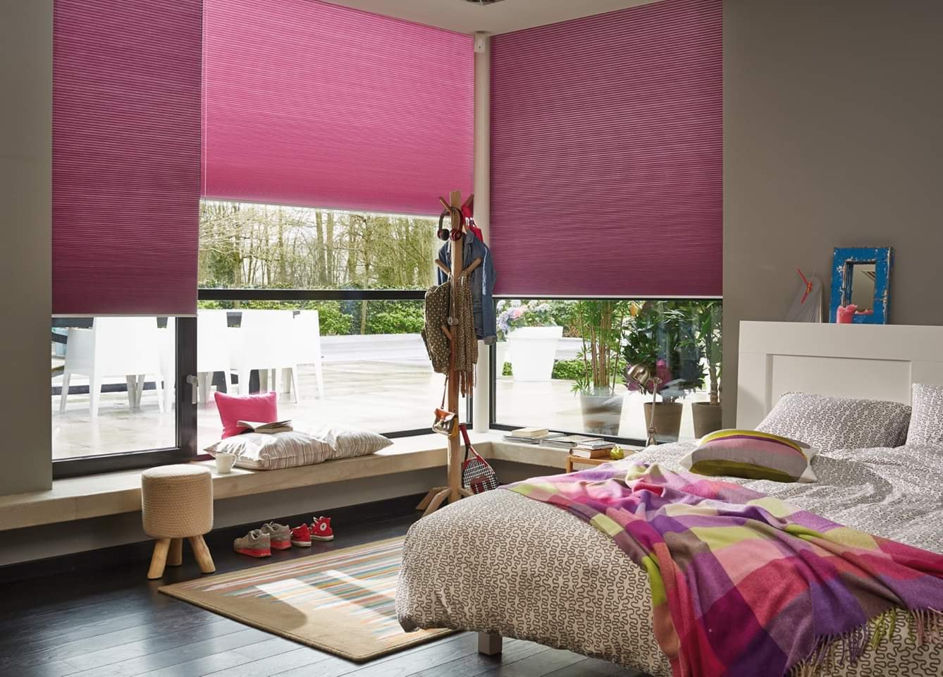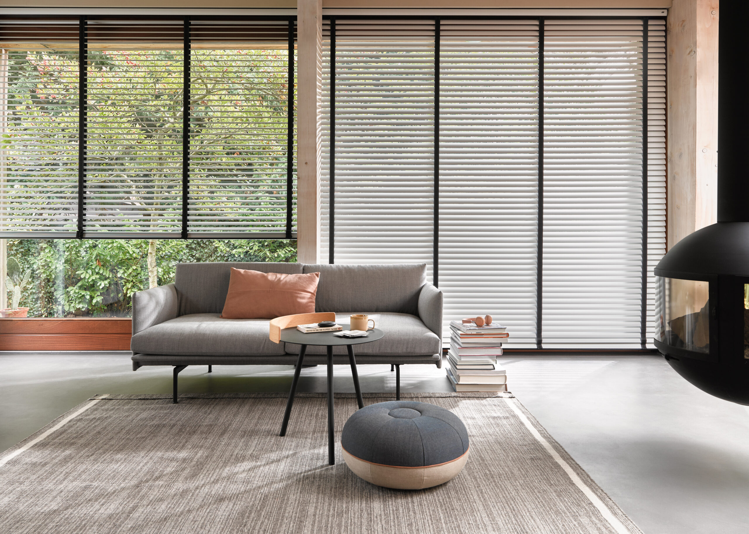 Oppnå maksimal fleksibilitet for å skjerme av etter dine behov med en funksjonell rullegardin i vindusrammen og lange gardinlengder som gjør interiøret komplett.