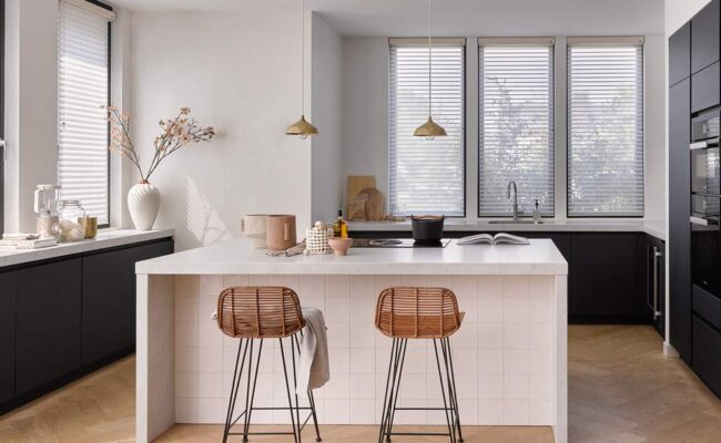 Du kan velge lamellbredde på 50 eller 70 mm, alt etter hva som passer for deg – smale for ekstra skjerming eller brede for et lysere rom.