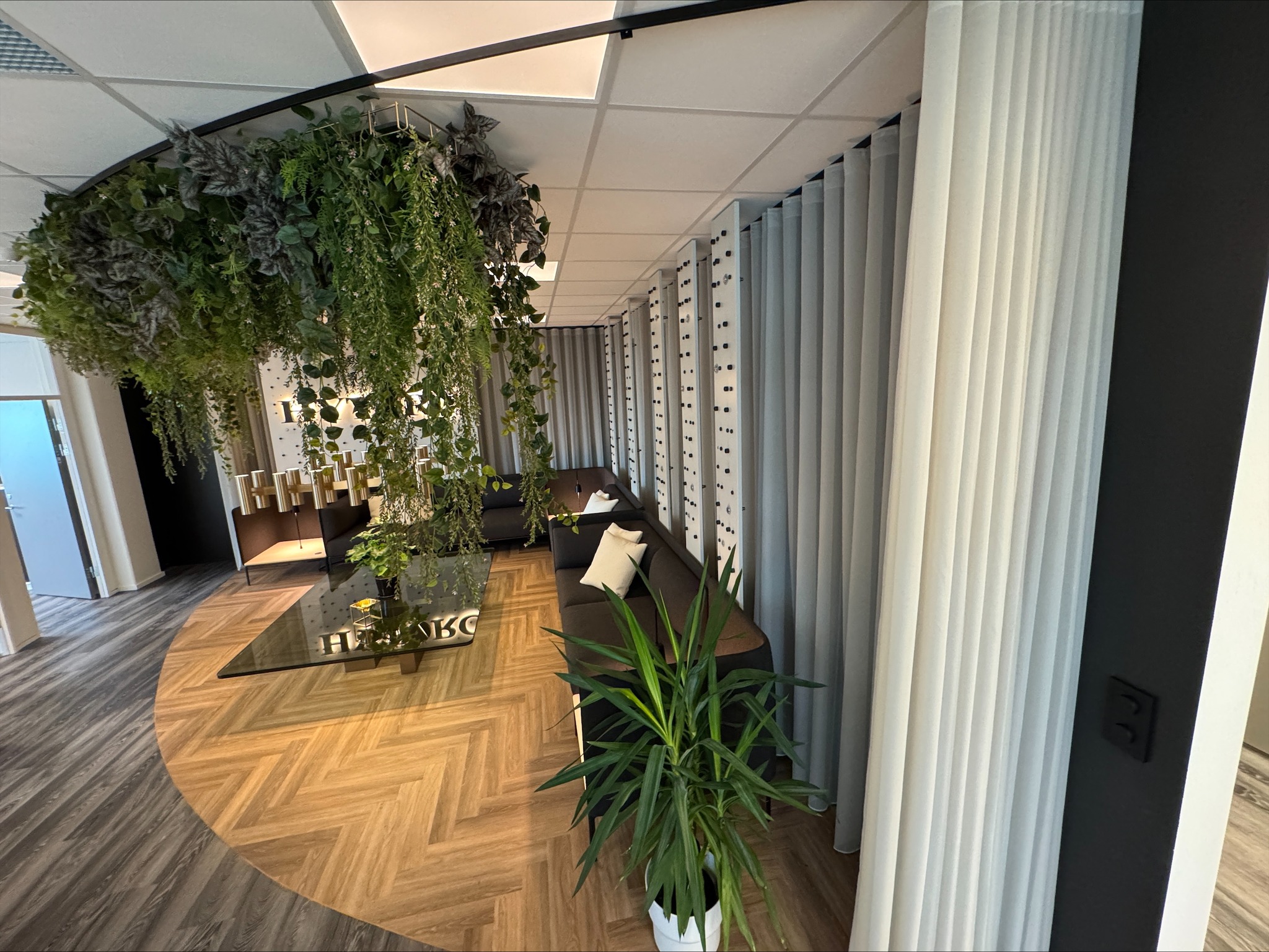 Se så lekkert dette ble!! Her har vi montert buet skinne i tak, med nydelige wavegardin hos Hytorc på oppdrag for DFU.