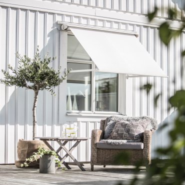 Vi leverer også utvending solskjerming. Vi har utvendige screens og markiser fra Luxaflex og Royal Solskjerming.